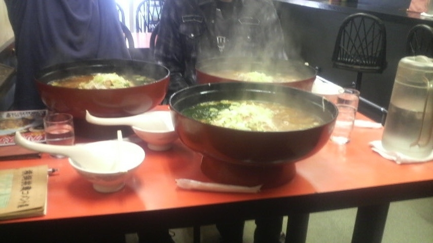 最初は、大和っていう学校の近くにあるラーメン屋で、「ペーターくん進級おめでとうパーティー」として、ペーターくんが5玉のラーメンに挑戦するという、いや、これって罰ゲームじゃね?なことをやりました。ペーターくんの他に、以前いいところまでいったKくん、以前死にかけたアロンの2人も挑戦。